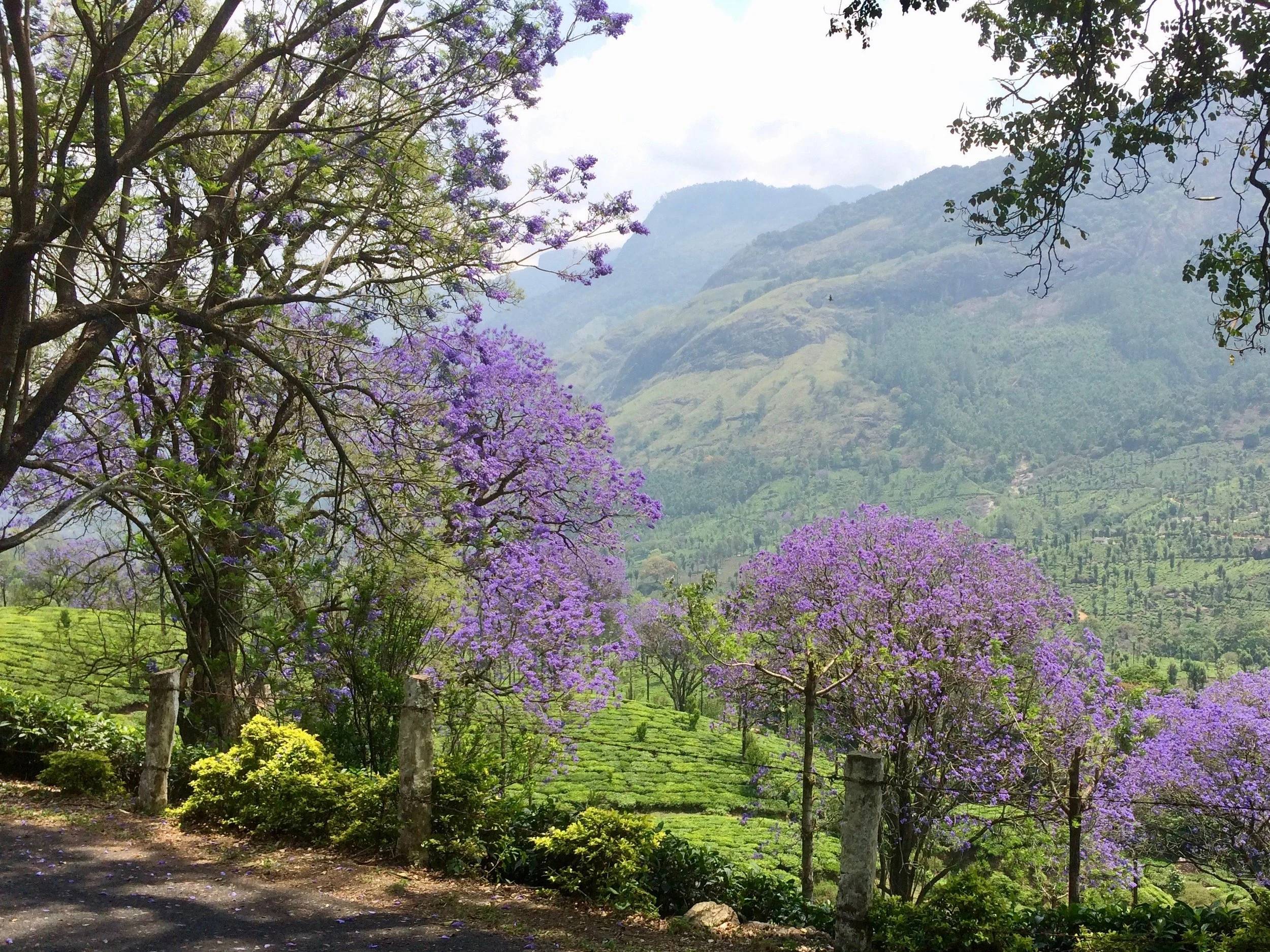 So we boarded trains and then taxis in a combination of travel and vacation. We traveled from Kochi over the mountains to Munnar, which was more beautiful than we could have imagined. Mile after mile of tea plantation hills stretch into the distance, and when we were there, it was a bit hazy, but the jacaranda trees were blooming, which more than made up for the haze. We huddled in our tiny taxi, guitars and trumpets jamming into our shoulder bones, gape-jawed in awe. Kenya had her birthday (she’s fourteen!) and got a pair of binoculars for her present and we each had a scoop of chocolate ice cream instead of cake. We planned to go to a wildlife sanctuary on her birthday, but we drove two hours in a jeep on a crazy bumpy road to get there and then found that the sanctuary was closed due to a fire in a different national park (?) and no amount of pleading would get them to allow us in. It was a beautiful drive, though. We sighed and watched monkeys for a while, then began the long drive back to our guest house.